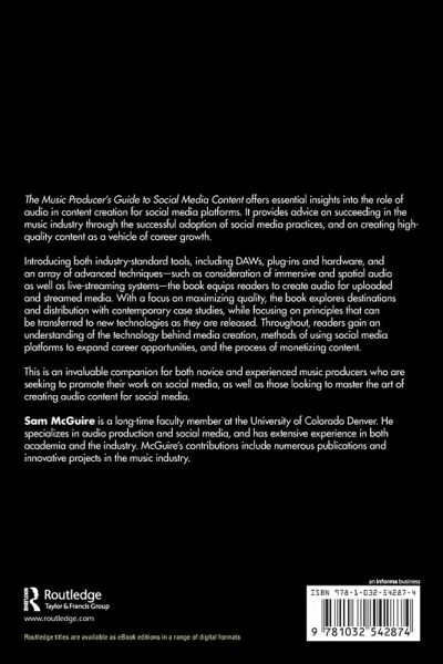 The Music Producer's Guide to Social Media Content offers essential insights into the role of audio in content creation for social media platforms. It provides advice on succeeding in the music industry through the successful adoption of social media practices, and on creating high-quality content as a vehicle of career growth.