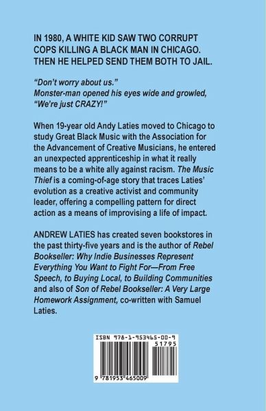 IN 1980, A WHITE KID SAW TWO CORRUPT COPS KILL A BLACK MAN IN CHICAGO. THEN HE HELPED SEND THEM BOTH TO JAIL. "Don't worry about us." Monster-man opened his eyes wide and growled, "We're just CRAZY!" When 19-year old Andy Laties moved to Chicago to study Great Black Music with the Association for the Advancement of Creative Musicians, he entered an unexpected apprenticeship in what it really means to be a white ally against racism. The Music Thief is a coming-of-age story that traces Laties' evolution as a creative activist and community leader, offering a compelling pattern for direct action as a means of improvising a life of impact.