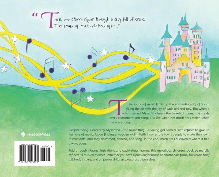 Sophie Armstrong, born in the UK and raised in Australia, is a violinist and composer who has shared her global music performances in over 40 cities internationally. Also an award-winning entrepreneur, Sophie runs a boutique public relations company, and teaches media training and stage craft. Sophie also founded Every Woman Foundation, which hosted festivals and programs focused on healing through self-expression. Sophie lives in Kelowna, British Columbia, with her husband, three children, a dog, and a cat. This is Sophie's first book, inspired by her journey as both a musician and a mother, and by the challenges we sometimes need to overcome to share our true creative selves. Illustrated by British artist Pearl Bates, whose stylized fantasy art brings the tale to life, The Music Thief is an enchanting read for all. Visit Sophie online for more musical content: Instagram: @sophieplaysviolin Website: www.sophiearmstrong.ca Facebook: www.facebook.com/sophieplaysviolin YouTube: www.youtube.com/sophiearmstrongmusic