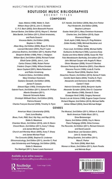 This research guide includes more than 1,400 annotated entries related to the genre as it appears on stage and screen. It includes reference works, monographs, articles, anthologies, and websites related to the musical. Separate sections are devoted to sub-genres (such as operetta and megamusical), non-English language musical genres in the U.S., traditions outside the U.S., individual shows, creators, performers, and performance. The second edition reflects the notable increase in musical theater scholarship since 2000. In addition to printed materials, it includes multimedia and electronic resources.