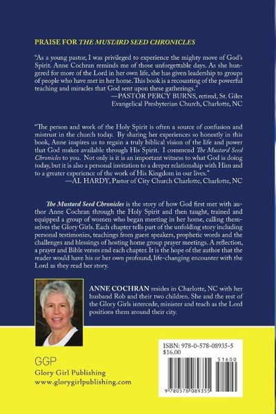 The Mustard Seed Chronicles is the story of how God first met with Anne, the author, through the Holy Spirit, and then trained and equipped women of faith who began meeting in her home for prayer group meetings.
