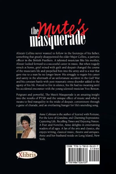 Alistair Collins never wanted to follow in the footsteps of his father, something that greatly disappointed the elder Major Collins. A talented musician like his mother, Alistair looked forward to a successful career in music. But when tragedy struck at home, grief mixed with guilt and despair changed the course of the musicians life and propelled him into the army and to a war that gave rise to a man he no longer knew. His struggle to regain his career and sanity in the aftermath of an unfortunate accident in the Gulf War and his constant battle with post-traumatic stress disorder added to the agony of his life. Forced to live in silence, his life had no meaning until his accidental encounter with the young talented musician Yvee Benton. Poignant and powerful, The Mutes Masquerade is an amazing insight into the results of PTSD and the unique effect of music and what it means to find tranquility in the midst of despair, contentment through a game of charade, and an everlasting hunger for lifes unending song.