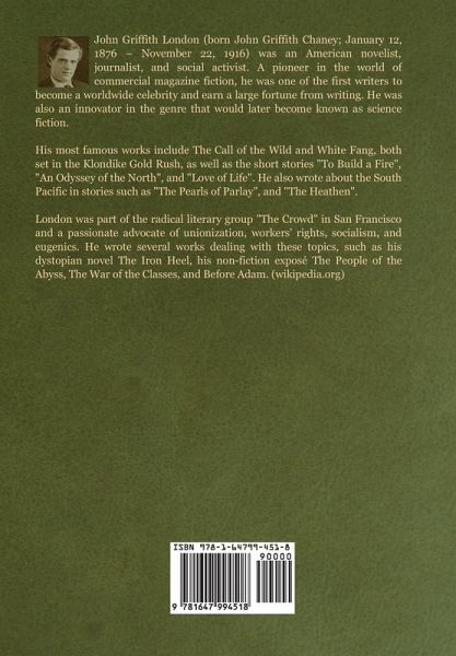 John Griffith London (born John Griffith Chaney; January 12, 1876 - November 22, 1916) was an American novelist, journalist, and social activist. A pioneer in the world of commercial magazine fiction, he was one of the first writers to become a worldwide celebrity and earn a large fortune from writing. He was also an innovator in the genre that would later become known as science fiction. His most famous works include The Call of the Wild and White Fang, both set in the Klondike Gold Rush, as well as the short stories "To Build a Fire", "An Odyssey of the North", and "Love of Life". He also…mehr