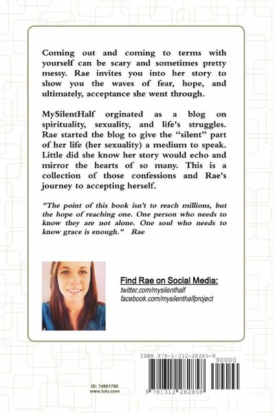 Coming out and coming to terms with yourself can be scary and sometimes pretty messy. Rae invites you into her story to show you the waves of fear, hope, and ultimately, acceptance she went through. MySilentHalf originated as a blog on spirituality, sexuality, and life's struggles. Rae started the blog to give the "silent" part of her life (her sexuality) a medium to speak. Little did she know her story would echo and mirror the hearts of so many. This is a collection of those confessions and Rae's journey to accepting herself.