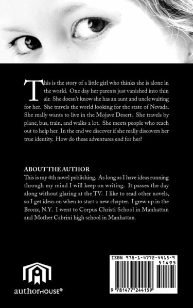This is the story of a little girl who thinks she is alone in the world. One day her parents just vanished into thin air. She doesn't know she has an aunt and uncle waiting for her. She travels the world looking for the state of Nevada. She really wants to live in the Mojave Desert. She travels by plane, bus, train, and walks a lot. She meets people who reach out to help her. In the end we discover if she really discovers her true identity. How do these adventures end for her?