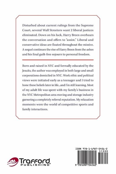 Disturbed about current rulings from the Supreme Court, several Wall Streeters want 2 liberal justices eliminated. Down on his luck, Harry Breen overhears the conversation and offers to "assist." Liberal and conservative ideas are floated throughout the missive. A sequel continues the rise of Harry Breen from the ashes and his final guilt-free sojourn to personal freedom.