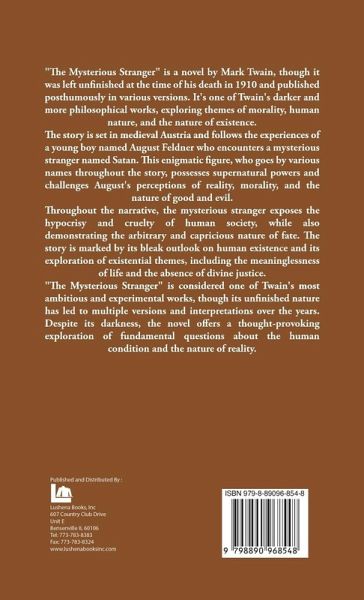 "The Mysterious Stranger" is a novel by Mark Twain, though it was left unfinished at the time of his death in 1910 and published posthumously in various versions. It's one of Twain's darker and more philosophical works, exploring themes of morality, human nature, and the nature of existence. The story is set in medieval Austria and follows the experiences of a young boy named August Feldner who encounters a mysterious stranger named Satan. This enigmatic figure, who goes by various names throughout the story, possesses supernatural powers and challenges August's perceptions of reality, morality, and the nature of good and evil. Throughout the narrative, the mysterious stranger exposes the hypocrisy and cruelty of human society, while also demonstrating the arbitrary and capricious nature of fate. The story is marked by its bleak outlook on human existence and its exploration of existential themes, including the meaninglessness of life and the absence of divine justice. "The Mysterious Stranger" is considered one of Twain's most ambitious and experimental works, though its unfinished nature has led to multiple versions and interpretations over the years. Despite its darkness, the novel offers a thought-provoking exploration of fundamental questions about the human condition and the nature of reality.
