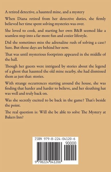 A retired detective, a haunted mine, and a mystery When Diana retired from her detective duties, she firmly believed her time spent solving mysteries was over. She loved to cook, and starting her own B&B seemed like a seamless step into a far more fun and cozier lifestyle. Did she sometimes miss the adrenaline rush of solving a case? Sure. But those days are behind her now. That was until mysterious footprints appeared in the middle of the hall. Though her guests were intrigued by stories about the legend of a ghost that haunted the old mine nearby, she had dismissed them as just that: stories. With strange occurrences starting around the house, she was finding that harder and harder to believe, and her sleuthing hat was well and truly back on. Was she secretly excited to be back in the game? That's beside the point. The real question is: Will she be able to solve The Mystery at Bakers Inn?