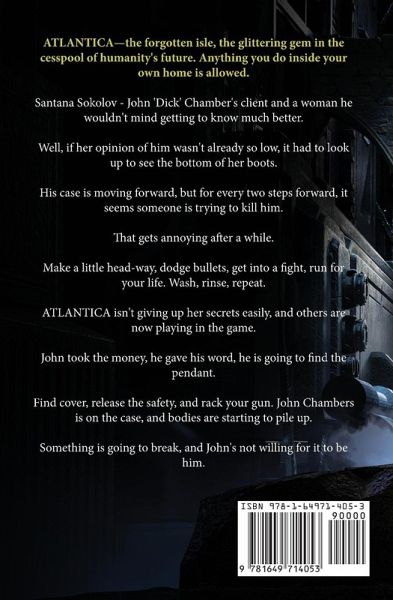 ATLANTICA - the forgotten isle, the glittering gem in the cesspool of humanity's future. Anything you do inside your own home is allowed. Santana Sokolov - John 'Dick' Chamber's client and a woman he wouldn't mind getting to know much better. Well, if her opinion of him wasn't already so low, it had to look up to see the bottom of her boots. His case is moving forward, but for every two steps forward, it seems someone is trying to kill him. That gets annoying after a while. Make a little head-way, dodge bullets, get into a fight, run for your life. Wash, rinse, repeat. ATLANTICA isn't giving up her secrets easily, and others are now playing in the game. John took the money, he gave his word, he is going to find the pendant. Find cover, release the safety, and rack your gun. John Chambers is on the case, and bodies are starting to pile up. Something is going to break, and John's not willing for it to be him. Go up, click the 'Buy Now' or 'Read for Free' button and grab ATLANTICA - The Mystery Deepens right now. But when the temptations of ATLANTICA grip your soul, don't say we didn't warn you.