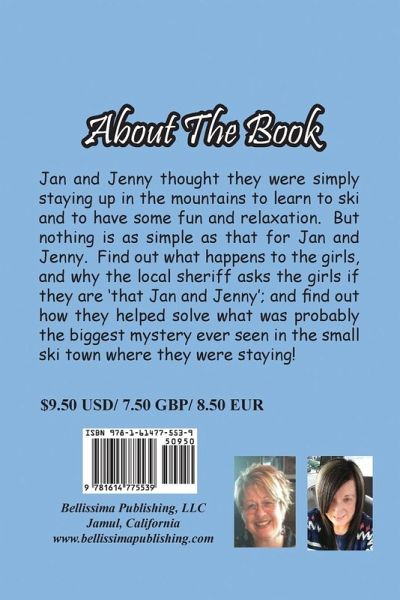 Pamela Hillan and Penelope Dyan, lifelong friends who used to like to pretend they were in a Nancy Drew book when they were kids, are back again, all grown up (and then some); and they are still pretending! And this is exactly why the Jan and Jenny books continue to be written and why they began! Penelope Dyan became a teacher, a published writer, a vocalist, and a mother and an attorney, while Pamela Hillan became a mother and a court reporter . . . and then finally, everything went back to what it was before all of that happened; and the Jan and Jenny books were born, beginning with their very first book in this series, "The Mystery On Burgundy Street'. It was their combined lifelong experiences, and their great desire to do good in this world, along with their love for the law, and their deep concern for humanity, that led to the creation of this latest book in the Jan and Jenny Mystery Series. This is the sixteenth book in this series; and Jan and Jenny are out to save the world once again, as they begin a new adventure in a cabin in the mountains near their homes, up in the snow. Jenny's Aunt Vi is there, as well as Jan's and Jenny's families; and two new characters, Josh and Sal, come to their assistance! Take part in the excitement, as you travel through the pages of 'The Mystery In The Snow'; and find out what Jan and Jenny experienced, what they learned, and why what they did and what they learned was so important.