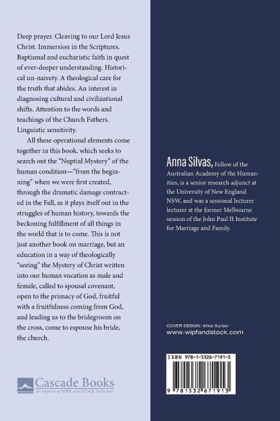Deep prayer. Cleaving to our Lord Jesus Christ. Immersion in the Scriptures. Baptismal and eucharistic faith in quest of ever-deeper understanding. Historical un-naivety. A theological care for the truth that abides. An interest in diagnosing cultural and civilizational shifts. Attention to the words and teachings of the Church Fathers. Linguistic sensitivity. All these operational elements come together in this book, which seeks to search out the ""Nuptial Mystery"" of the human condition--""from the beginning"" when we were first created, through the dramatic damage contracted in the Fall, as it plays itself out in the struggles of human history, towards the beckoning fulfillment of all things in the world that is to come. This is not just another book on marriage, but an education in a way of theologically ""seeing"" the Mystery of Christ written into our human vocation as male and female, called to spousal covenant, open to the primacy of God, fruitful with a fruitfulness coming from God, and leading us to the bridegroom on the cross, come to espouse his bride, the church.