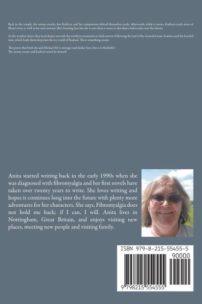 Back in the temple, the enemy attacks, but Kathryn and her companions defend themselves easily. Afterwards, while it snows, Kathryn reads more of Blane's story as well as her son's journal. She's learning fast, but she is sure there is more to this than a bid to take over the throne. As the weather clears, they head deeper towards the northern mountains to find answers following the trail of the wounded man, Scarface and the hooded man, which leads them deep into the icy world of Raabaal. There something creeps. The power that both she and Michael felt is stronger and darker here, but is it Medrith's? The enemy awaits and Kathryn won't be denied!