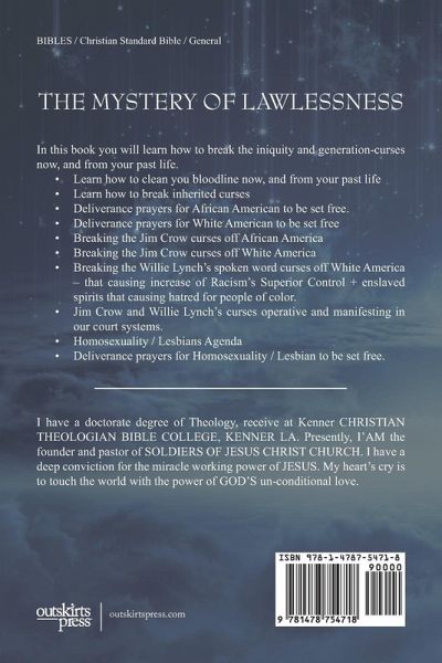In this book you will learn how to break the iniquity and generation-curses now, and from your past life. Learn how to clean you bloodline now, and from your past life Learn how to break inherited curses Deliverance prayers for African American to be set free. Deliverance prayers for White American to be set free Breaking the Jim Crow curses off African America Breaking the Jim Crow curses off White America Breaking the Willie Lynch's spoken word curses off White America - that causing increase of Racism's Superior Control + enslaved spirits that causing hatred for people of color. Jim Crow and Willie Lynch's curses operative and manifesting in our court systems. Homosexuality / Lesbians Agenda Deliverance prayers for Homosexuality / Lesbian to be set free.