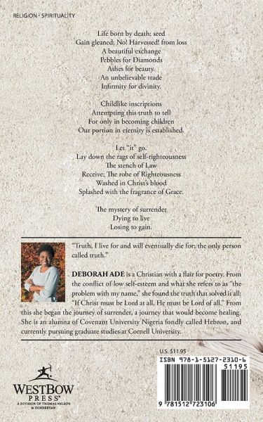 Life born by death; seed Gain gleaned; No! Harvested! from loss A beautiful exchange Pebbles for Diamonds Ashes for beauty. An unbelievable trade Infirmity for divinity. Childlike inscriptions Attempting this truth to tell For only in becoming children Our portion in eternity is established. Let "it" go. Lay down the rags of self-righteousness The stench of Law Receive; The robe of Righteousness Washed in Christ's blood Splashed with the fragrance of Grace. The mystery of surrender Dying to live Losing to gain.