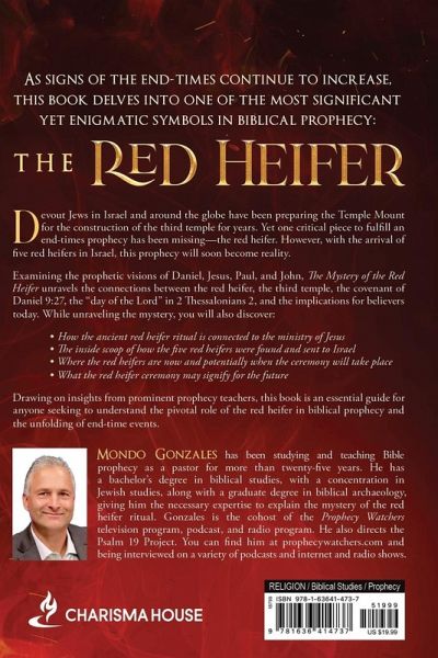 Mondo Gonzales has been studying and teaching Bible prophecy as a pastor for more than twenty-five years. He has a bachelor's degree in biblical studies, with a concentration in Jewish studies, along with a graduate degree in biblical archaeology, giving him the necessary expertise to explain the mystery of the red heifer ritual. Mondo is the cohost of the Prophecy Watchers television program, podcast, and radio program. He also directs the Psalm 19 Project. You can find him at prophecywatchers.com and being interviewed on a variety of podcasts and internet and radio shows.