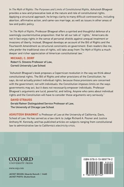 What is a constitutional right? If asked, most Americans would say that it is an entitlement to act as one pleases - i.e., that rights protect autonomy. That understanding, however, is wrong; it is, indeed, The Myth of Rights. The primary purpose and effect of constitutional rights in our society is structural. These rights restrain governmental power in order to maintain a balance between citizens and the State, and an appropriately limited role for the State in our society. Of course, restricting governmental power does have the effect of advancing individual autonomy, but that is not the primary purpose of rights, and furthermore, constitutional rights protect individual autonomy to a far lesser degree that is generally believed. Professor Bhagwat brings clarity to many difficult controversies with a structural approach towards constitutional rights. Issues discussed include flag-burning, the ongoing debates over affirmative action and same-sex marriage, and the great battles over executive power fought during the second Bush Administration. The Myth of Rights addresses the constitutional issues posed in these and many other areas of law and public policy, and explains why a structural approach to constitutional rights illuminates these disputes in ways that an autonomy-based approach cannot. Readers will understand that while constitutional rights play a critical role in our legal and political system, it is a very different role from what is commonly assumed.