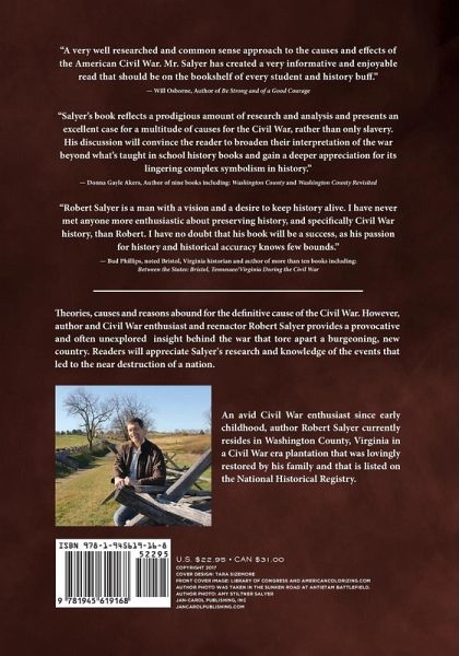 The author represents a very well researched and common sense approach to the causes and effects of the American Civil War. Mr. Salyer has created a very informative and enjoyable read that should be on the bookshelf of every student and history buff.Theories, causes and reasons abound for the definitive cause of the Civil War. However, author and Civil War enthusiast and reenactor, Robert Salyer provides a provocative and often unexplored insight behind the war that tore apart a burgeoning, new country. Readers will appreciate Salyer's research and knowledge of the events that led to the near destruction of a nation.