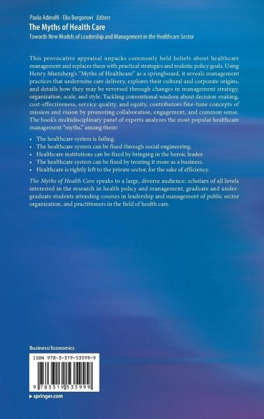 The Myths of Health Care speaks to a large, diverse audience: scholars of all levels interested in the research in health policy and management, graduate and under-graduate students attending courses in leadership and management of public sector organization, and practitioners in the field of health care.