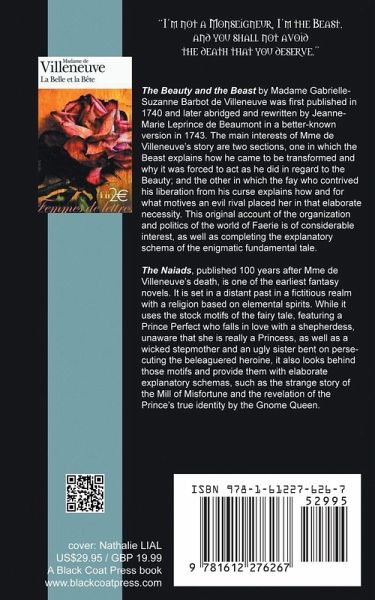The Beauty and the Beast by Madame Gabrielle-Suzanne Barbot de Villeneuve was first published in 1740 and later abridged and rewritten by Jeanne-Marie Leprince de Beaumont in a better-known version in 1743.The main interests of Mme de Villeneuve’s story are two sections, one in which the Beast explains how he came to be transformed and why it was forced to act as he did in regard to the Beauty; and the other in which the fay who contrived his liberation from his curse explains how and for what motives an evil rival placed her in that elaborate necessity. This original account of the organization and politics of the world of Faerie is of considerable interest, as well as completing the explanatory schema of the enigmatic fundamental tale. The Naiads, published 100 years after Mme de Villeneuve’s death, is one of the earliest fantasy novels. It is set in a distant past in a fictitious realm with a religion based on elemental spirits. While it uses the stock motifs of the fairy tale, featuring a Prince Perfect who falls in love with a shepherdess, unaware that she is really a Princess, as well as a wicked stepmother and an ugly sister bent on persecuting the beleaguered heroine, it also looks behind those motifs and provide them with elaborate explanatory schemas, such as the strange story of the Mill of Misfortune and the revelation of the Prince’s true identity by the Gnome Queen.