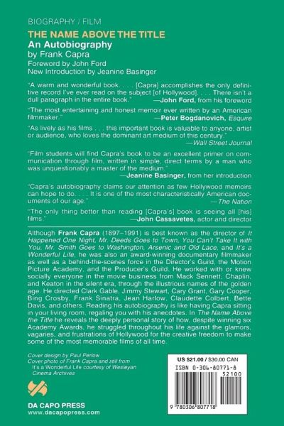 "Although Frank Capra (1897--1991) is best known as the director of It Happened One Night, Mr. Deeds Goes to Town, You Can't Take It with You, Mr. Smith Goes to Washington, Arsenic and Old Lace, and It'"