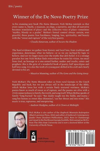 Poetry. In his stunning new book THE NAME MUSEUM, Nick McRae reminds us that every name is, finally, a museum, an elegy, a narrative, and that all narrative becomes translation of place--and the collective voice of place--sometimes 'mythic, bloody as a psalm.' McRae's formal control always certain, ever graceful, these poems fuse harshness, longing, loss, spirituality, and beauty with the 'sweat and rapture' of the very best poetry.--Claudia Emerson The hard evidence we gather from history and local lore, from tradition and experience, determines what we believe--or so we are inclined by logic to believe. And yet we linger more over the truths that defy belief. It is a strange paradox but one Nick McRae finds everywhere he trains his vision. An email from God, an homage to a one-armed barber, snakes and trucks, saints and prophets: this is the grist of a wonderful book of poetry, half apocalypse and half love-song. It is also the work of a young poet skilled in his craft and clearly devoted to his art.--Maurice Manning