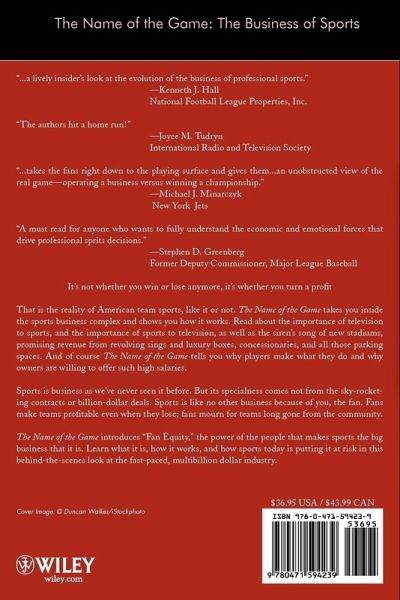 Free agents Bobby Bonilla, Barry Bonds, and Doug Drabek leave the Pittsburgh Pirates to earn millions elsewhere, turning the division-winning Pirates into also rans. CBS, the network that paid billions for baseball and football in the 80s and 90s, surrendered the sports to its rivals in 1993. After years of being among the lowest paid pros, NFL players from linemen to running backs joined the millionaires club of free agency in 1993. We are bombarded with headlines about the big money in sports today. Players' salaries go up and up, the price of teams goes up and up, while doomsayers predict the bubble is about to burst. Where is sports going, and what is pushing it there? The Name of the Game offers some answers. This unique book about the forces acting on bigtime team sports in America traces their growth from the days when George Halas ran an entire franchise himself to the present, when managing a team resembles the governing of a small city. Learn how teams were businesses at the start, and how the size of those businesses today affects everyone who plays and watches sports or even buys a team cap. Learn about fan equity, the secret force driving sports economics, and learn how it can make even an inept team a winning business. Spiced by candid revelations from such insiders as Boston Celtics President Red Auerbach and Jeff Smulyan, former owner of the Seattle Mariners, The Name of the Game asks hard questions about the most strategic elements of sports: . Superstars - why are they so important, and which ones are worth those big contracts? Expansion - is it good or bad for sports? Is it good business or bad business? Ownership - if escalating salaries and shrinking televisionrevenues do predict hard times ahead, why do teams always change hands for ever more money, and why is each new expansion more costly than the one before? Fans - how much do rising ticket prices, late-night broadcasts, and increased player mobility threaten their devotion? Just as a box score or a summary tells what happened in a game, The Name of the Game looks inside sports, at television, licensing, marketing and attendance, and it tells how each can make a team a winner or loser in its annual report. The Name of the Game is a book for everyone who loves sports and has a personal stake in its spiritual - not simply its financial - health.