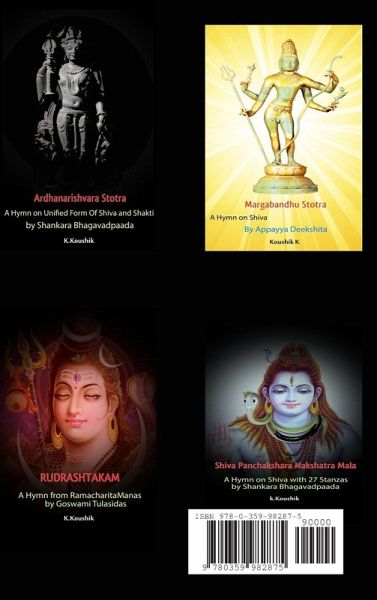 In this book I will explain the meaning of 108 names of Shiva which is given in shiva-rahasya-khanda of Skanda pur¿na. This particular hymn is considered one of the most important hymns of Shiva. We can find authentic commentaries on this hymn by many great scholars of Pur¿na, and mantra sh¿stra. Shiva Tatva Rahasya of Neelakantha Deekshita - a profound Shaivate scholar, a great Vaidika and a great Agama and mantra sh¿stras scholar which is an elaborate commentary of the hymn and the other work is Shivan¿makalpalata of Bhaskara Raaya - A profound Sh¿kta and a great scholar of, puranas, Agamas and mantrash¿stras. The work Shivan¿makalpalata is in the form of a poetic hymn rather than a commentary. The hymn shows us the meaning of each name of Shiva ashtottara shatan¿ma stotra through each Shloka. We can also find explanations of the names of Lord Shiva in various texts, like in Mahabharata, in commentaries of Shree Rudra Prashna and commentaries of Vedas, in ¿gamas and pur¿nas.