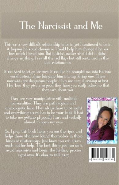 This was a very difficult relationship to be in yet I continued to be in it, hoping he would change or I could help him change if he saw how much I loved him. But it didn't matter what I did, it didn't change anything. I saw all the red flags but still continued in this toxic relationship. It was hard to let go for sure. It was like he brought me into his toxic world instead of me bringing him into my loving one. These narcissists are dangerous people. They are very charming at first. The "love" they give is so good they have you really believing that they care about you. They are very manipulative with multiple personalities. They are pathological and unapologetic liars. They always have to be right and everything always has to be your fault. It had to take me getting physically hurt and verbally abused to open my eyes. So, I pray this book helps you see the signs and helps those who have found themselves in these kinds of relationships. Just know you can always reach out for help. The best thing you can do is avoid narcissists and begin the healing process right away. It's okay to walk away.