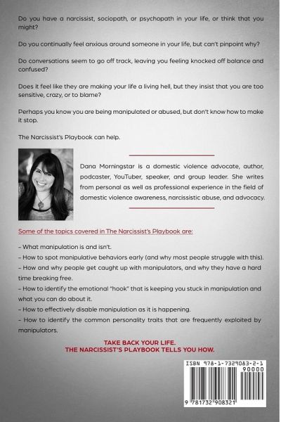 Some of the topics covered in The Narcissist's Playbook are: -What manipulation is and isn't. -How to spot manipulative behaviors early (and why most people struggle with this). -How and why people get caught up with manipulators, and why they have a hard time breaking free. -How to identify the emotional "hook" that is keeping you stuck in manipulation and what you can do about it. - How to effectively disable manipulation as it is happening. - How to identify the common personality traits that are frequently exploited by manipulators.