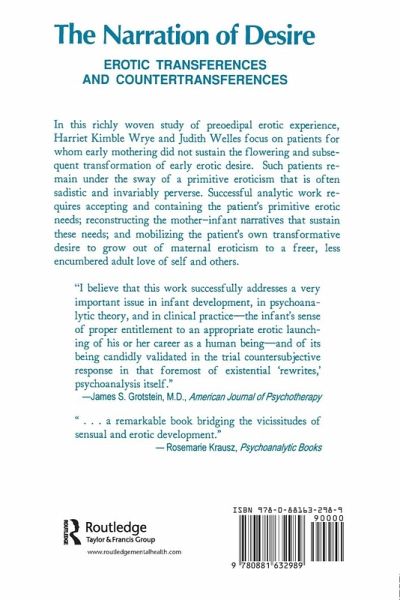 In this richly woven study of preoedipal erotic experience, Harriet Kimble Wrye and Judith Welles focus on patients for whom early mothering did not sustain the flowering and subsequent transformation of early erotic desire. Such patients remain under the sway of a primitive eroticism that is often sadistic and invariably perverse. Successful analytic work requires accepting and containing the patient's primitive erotic needs; reconstructing the mother-infant narratives that sustain these needs; and mobilizing the patient's transformative desire to grow out of maternal eroticism to an adult love of self and others.