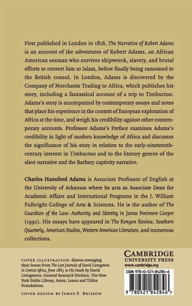 First published in London in 1816, The Narrative of Robert Adams is an account of the adventures of Robert Adams, an African American seaman who survives shipwreck, slavery, and brutal efforts to convert him to Islam, before being ransomed to the British consul. In London, Adams is discovered by the Company of Merchants Trading which publishes his story, into which Adams inserts a fantastical account of a trip to Timbuctoo. Adams's story is accompanied by contemporary essays and notes that place his experience in the context of European exploration of Africa at the time, and weigh his credibility against other contemporary accounts. Professor Adams's introduction examines Adams's credibility in light of modern knowledge of Africa and discusses the significance of his story in relation to the early nineteenth century interest in Timbuctoo, and to the literary genres of the slave narrative and the Barbary Captivity narrative.