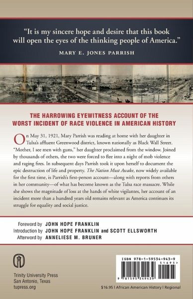 Mary Elizabeth Jones Parrish (1892¿1972) was born in 1892 in Yazoo City, Mississippi. She moved to Tulsa around 1919 and worked teaching typing and shorthand at a branch of the YMCA. A trained journalist, Parrish gathered eyewitness accounts from survivors of the 1921 Tulsa race massacre and chronicled her own experience fleeing the violence with her young daughter. Those accounts were published in her book Events of the Tulsa Disaster, which was privately printed in 1922.
