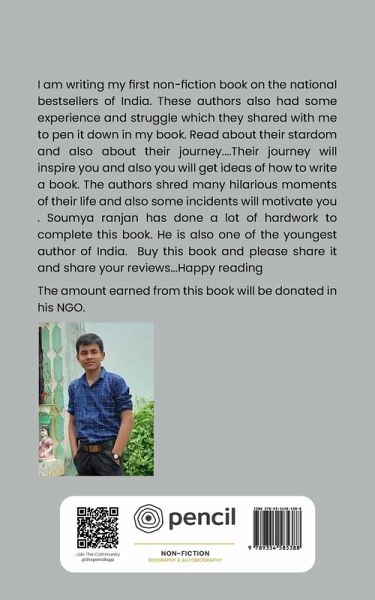 I am writing my first non-fiction book on the national bestsellers of India. These authors also had some experience and struggle which they shared with me to pen it down in my book. Read about their stardom and also about their journey....Their journey will inspire you and also you will get ideas of how to write a book. The authors shred many hilarious moments of their life and also some incidents will motivate you . Soumya ranjan has done a lot of hardwork to complete this book. He is also one of the youngest author of India. Buy this book and please share it and share your reviews...Happy reading The amount earned from this book will be donated in his NGO.