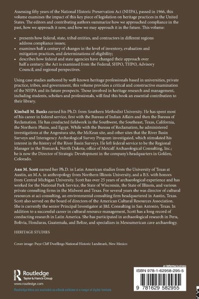 Assessing fifty years of the National Historic Preservation Act (NHPA), passed in 1966, this volume examines the impact of this key piece of legislation on heritage practices in the United States. The editors and contributing authors summarize how we approached compliance in the past, how we approach it now, and how we may approach it in the future. This volume presents how federal, state, tribal entities, and contractors in different regions address compliance issues; examines half a century of changes in the level of inventory, evaluation and mitigation practices, and determinations of eligibility; describes how the federal and state agencies have changed their approach over half a century; the Act is examined from the Federal, SHPO, THPO, Advisory Council, and regional perspectives. Using case studies authored by well-known heritage professionals based in universities, private practice, tribes, and government, this volume provides a critical and constructive examination of the NHPA and its future prospects. Archaeology students and scholars, as well heritage professionals, should find this book of interest.