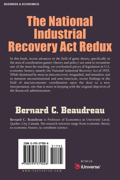 In this book, recent advances in the field of game theory, specifically in the area of coordination games (theory and policy) are used to reexamine one of the most far-reaching, yet overlooked pieces of legislation in U.S. economic history, namely the National Industrial Recovery Act of 1933. While dismissed by most as misconceived, misguided, and mistaken, not to mention unconstitutional and anti-American, recent findings in the field of macroeconomic coordination open the door to a new interpretation, one that is more in keeping with the original objectives of the Roosevelt administration.