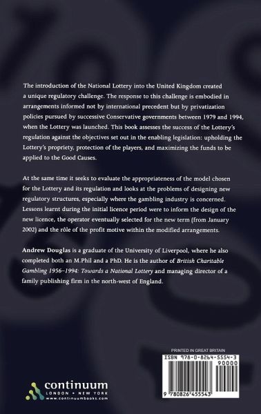 The introduction of a National Lottery into the United Kingdom created a unique regulatory challenge. The response to this challenge is embodied in arrangements informed not by international precedent but by privatisation policies pursued by successive Conservative governments between 1979 and 1994 when the Lottery was launched. Dr Douglas assesses the success of the Lottery's regulation against the objectives set out in the enabling legislation: the upholding of the Lottery's propriety, the protection of the players, and the maximising of the funds to be applied to the Good Causes. Lessons learned during the initial Licence period will inform the new seven year Licence from October 2001, the operator chosen for the new term, and in particular the role of the profit motive within the new arrangements.