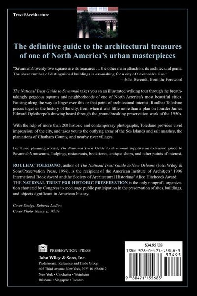 The definitive guide to the architectural treasures of one of North America's urban masterpieces "Savannah's twenty-two squares are its treasures ? the other main attraction: its architectural gems. The sheer number of distinguished buildings is astonishing for a city of Savannah's size." ?John Berendt, from the Foreword The National Trust Guide to Savannah takes you on an illustrated walking tour through the breathtakingly gorgeous squares and neighborhoods of one of North America's most beautiful cities. Pausing along the way to linger over this or that point of architectural interest, Roulhac Toledano pieces together the history of the city, from when it was little more than a plan on founder James Edward Oglethorpe's drawing board through the groundbreaking preservation work of the 1950s. With the help of more than 200 historic and contemporary photographs, Toledano provides vivid impressions of the city, and takes you to the outlying areas of the Sea Islands and salt marshes, the plantations of Chatham County, and nearby river villages. For those planning a visit, The National Trust Guide to Savannah supplies an extensive guide to Savannah's museums, lodgings, restaurants, bookstores, antique shops, and other points of interest.