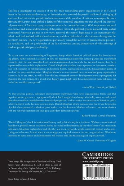 This book investigates the creation of the first truly nationalized party organizations in the United States in the late nineteenth century, an innovation that reversed the parties' traditional privileging of state and local interests in nominating campaigns and the conduct of national campaigns. Between 1880 and 1896, party elites crafted a defense of these national organizations that charted the theoretical parameters of American party development into the twentieth century. With empowered national committees and a new understanding of the parties' role in the political system, national party leaders dominated American politics in new ways, renewed the parties' legitimacy in an increasingly pluralistic and nationalized political environment, and thus maintained their relevance throughout the twentieth century. The new organizations particularly served the interests of presidents and presidential candidates, and the little-studied presidencies of the late nineteenth century demonstrate the first stirrings of modern presidential party leadership.