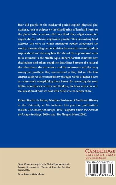How did people of the medieval period explain physical phenomena, such as eclipses or the distribution of land and water on the globe? What creatures did they think they might encounter: angels, devils, witches, dogheaded people? This fascinating book explores the ways in which medieval people categorized the world, concentrating on the division between the natural and the supernatural and showing how the idea of the supernatural came to be invented in the Middle Ages. Robert Bartlett examines how theologians and others sought to draw lines between the natural, the miraculous, the marvelous and the monstrous, and the many conceptual problems they encountered as they did so. The final chapter explores the extraordinary thought-world of Roger Bacon as a case study exemplifying these issues. By recovering the mentalities of medieval writers and thinkers the book raises the critical question of how we deal with beliefs we no longer share.