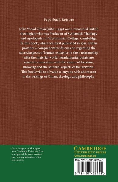 John Wood Oman (1860-1939) was a renowned British theologian who was Professor of Systematic Theology and Apologetics at Westminster College, Cambridge. In this book, which was first published in 1931, Oman provides a comprehensive discussion regarding the sacred aspects of human existence in their relationship with the material world. Fundamental points are raised in connection with the nature of freedom, knowing and the spiritual aspects of the universe. This book will be of value to anyone with an interest in the writings of Oman, theology and philosophy.