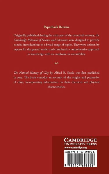 Originally published during the early part of the twentieth century, the Cambridge Manuals of Science and Literature were designed to provide concise introductions to a broad range of topics. They were written by experts for the general reader and combined a comprehensive approach to knowledge with an emphasis on accessibility. The Natural History of Clay by Alfred B. Searle was first published in 1912. The book contains an account of the origins and properties of clays, incorporating information on their chemical and physical characteristics.