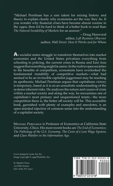 As Socialist states struggle to transform themselves into market economies and the United States privatizes everything from schooling to policing, the current crises in Russia and East Asia suggest that something might be amiss. In the rush to open societies to the benefits of competition, economists have overlooked the fundamental instability of competitive markets. What had seemed to be an invincible capitalist juggernaut may be reaching its apotheosis. A close look at market economies is more timely and crucial than ever. Michael Perelman argues that capitalism's victory is temporary, based as it is on an unrealistic understanding of the system's inherent risks. He analyzes the nature and causes of crisis within a market society, and along the way, he re-examines one of capitalism's most primary and unquestioned tenets, that the more competition there is, the better off society will be. This accessible book, garnished with plenty of examples and anecdotes, is an open-minded injection of common sense into the understanding of a capitalist society.