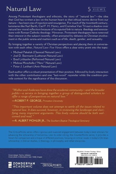 Bringing together a variety of perspectives in much-needed conversation, Natural Law: Five Views helps readers to understand the various approaches to â natural lawâ theory within the Christian and classical intellectual traditions.?