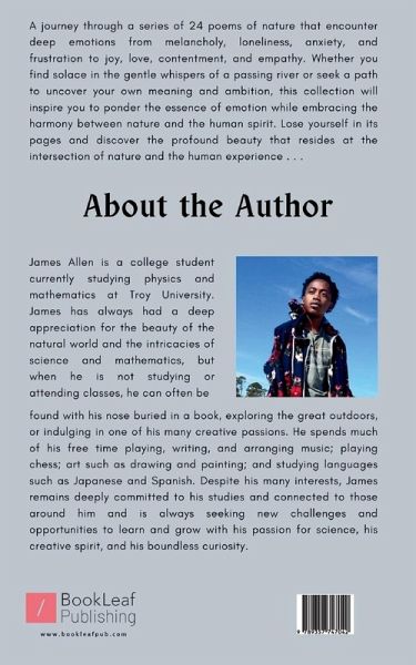 A journey through a series of 24 poems of nature that encounter deep emotions from melancholy, loneliness, anxiety, frustration, and ambition, to joy, love, amusement, contentment, and empathy.