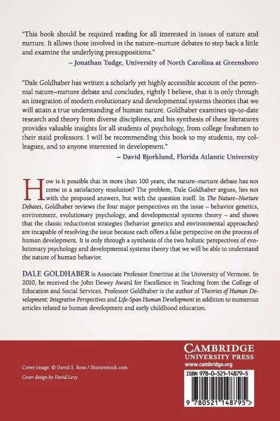 How is it possible that in more than one hundred years, the nature-nurture debate has not come to a satisfactory resolution? The problem, Dale Goldhaber argues, lies not with the proposed answers, but with the question itself. In The Nature-Nurture Debate, Goldhaber reviews the four major perspectives on the issue - behavior genetics, environment, evolutionary psychology and developmental systems theory - and shows that the classic, reductionist strategies (behavior genetics and environmental approaches) are incapable of resolving the issue because they each offer a false perspective on the process of human development. It is only through a synthesis of the two holistic perspectives of evolutionary psychology and developmental systems theory that we will be able to understand the nature of human behavior.