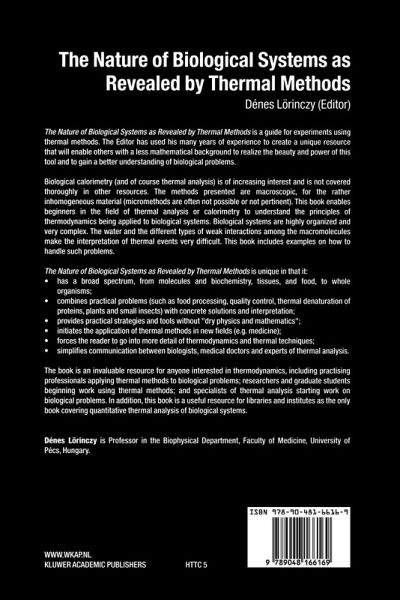 Af ter a kind mo ti va tion by Judit Si mon (Ed i tor-in-Chief of the Jour nal of Ther mal Anal y s is and Cal o ri m e t r y , Kluwe r Ac a dem ic Pub lis her) and ne go ti a tions with po- si ble con tri bu tors lasting for m ore than one year it was de cided to write a book about the ap pli ca tion of ther mal meth ods in bi ol ogy. Its aim was to be a guide how to per form ex per i ments and what kind of in for mation m ight be gained by them. We tried to col lect in for mation tha t could be achieved only dur ing a long per sonal pra- tice. In this way sci en tists from bi ol ogy and med i cine , e. g. , who are not so skilled in phys ics and math e mat ics may re al ize very soon the beauty and power of this tool at one hand. On the other hand, those sci en tists with better back ground in nat u ral sc- ences can be more sensitive to find out exciting biological problems.