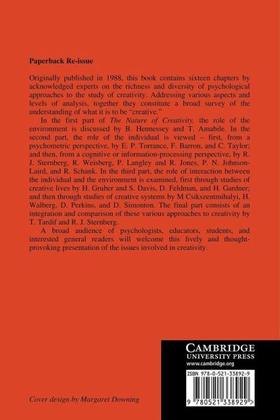 Sixteen chapters by acknowledged experts reveal the richness and diversity of the most recent psychological approaches to the study of creativity. Addressing various aspects and levels of analysis, together they constitute a broad survey of our current understanding of what it is to be 'creative.'