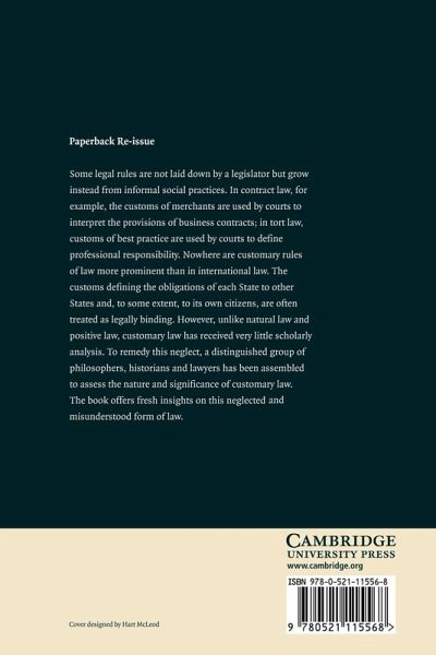 Some legal rules are not laid down by a legislator but grow instead from informal social practices. In contract law, for example, the customs of merchants are used by courts to interpret the provisions of business contracts; in tort law, customs of best practice are used by courts to define professional responsibility. Nowhere are customary rules of law more prominent than in international law. The customs defining the obligations of each State to other States and, to some extent, to its own citizens, are often treated as legally binding. However, unlike natural law and positive law, customary law has received very little scholarly analysis. To remedy this neglect, a distinguished group of philosophers, historians and lawyers has been assembled to assess the nature and significance of customary law. The book offers fresh insights on this neglected and misunderstood form of law.