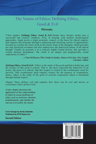 "Chris Angle's Defining Ethics, Good & Evil blends three distinct modes into a successful and creative synthesis. First, in keeping with modern deontological approaches, Angle posits a single principle, respect, as the basis for ethical enquiry, and explores this principle through a surprising and satisfying variety of applications. Second, he couches the entire work in the classic form of the dialogue, which provides not only historical resonance but also underscores the dialectical nature of all ethical thought. Finally, he presents it in a stylized, highly formal diction; this provides a certain abstract detachment. The result is an unique and pragmatically sound exploration of ethics." Clair McPherson, PhD, Medieval Studies, Master of Divinity, MA, English Literature, Author Defining Ethics, Good & Evil - Ethics is the study of the good and bad in behaving, and the essence of this good is respect. That is, the more respectful the behavior of an action, the more it is ethical, and this respect is rooted in the evolutionary need for survival. This evolutionary need requires respect for the purpose of cooperation. Hence, ethics is the study of the good of societal cooperation which is facilitated through mutual respect. Chapter Three defines evil and explains how there can be evil and misery in coexistence with a perfect God. A later chapter discusses the application of this understanding of ethics to actual problems of ethics such as terrorism, abortion, totalitarianism, and whether the end can ever justify the means.