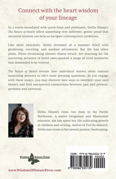 In a world inundated with quick fixes and platitudes, Delila Olsson's "The Nature of Hearts" offers something very different: gentle proof that ancestral wisdom can help us navigate contemporary problems. Like most educators, Delila dreamed of a summer filled with gardening, traveling, and outdoor adventures. But life had other plans. When devastating chronic illness struck, her yearning for the nurturing presence of loved ones sparked a surge of vivid memories that demanded to be written. The Nature of Hearts reveals how individual stories often contain surprising answers to life's most pressing questions. As you engage with these essays, you may discover new ways to interpret your own history and find unexpected connections between past and present, personal and universal.